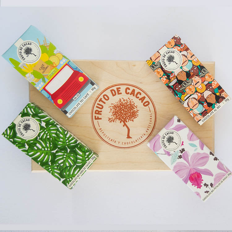 Pequeños bocados de chocolate con sabores únicos como café, uchuva, mango y...
